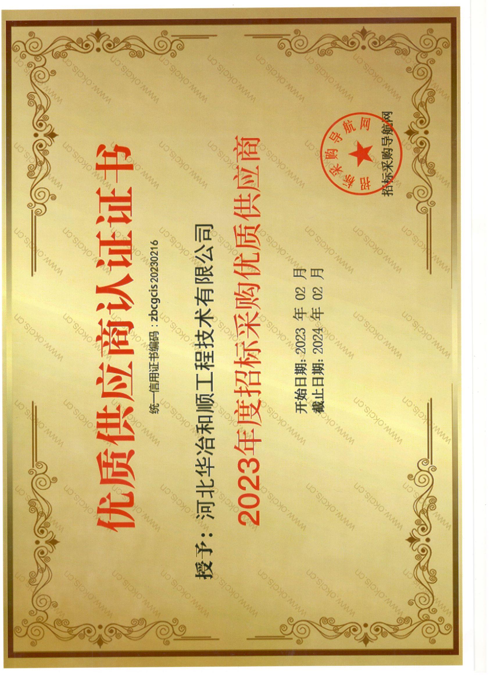 優(yōu)質(zhì)供應(yīng)商認(rèn)證證書